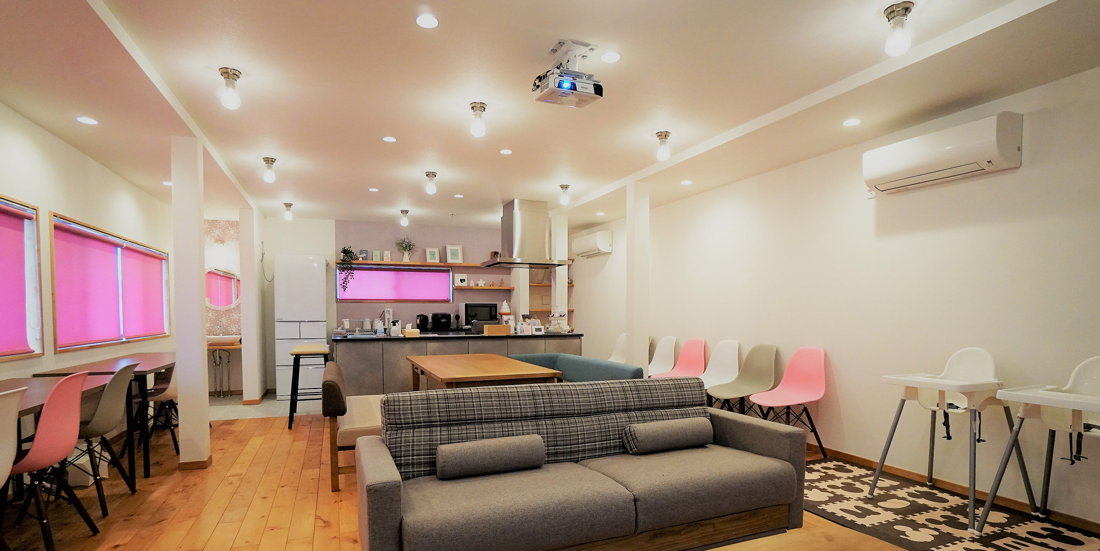 快適で心地よい空間。キッチンやプロジェクターなどの設備、